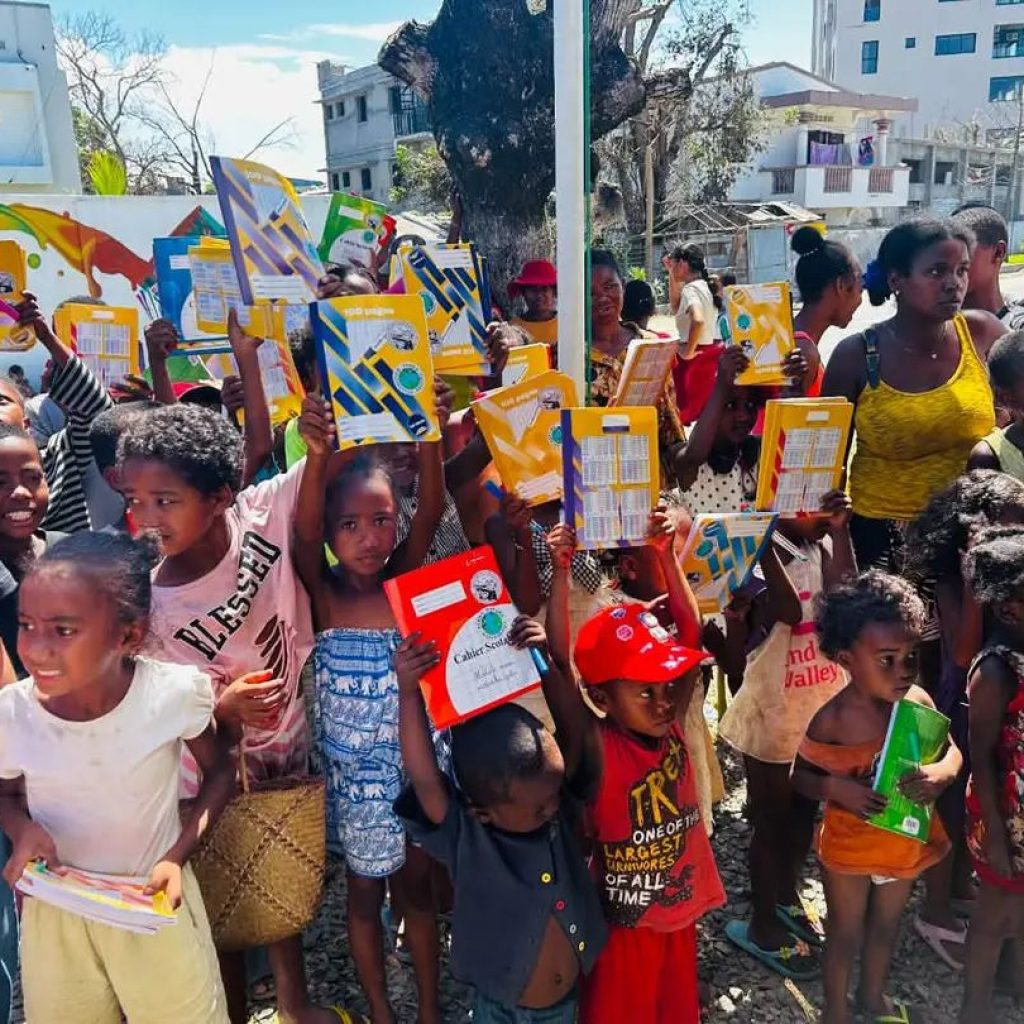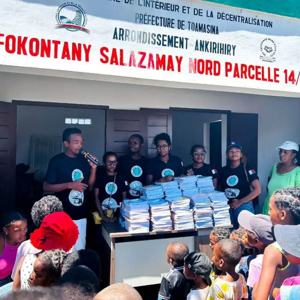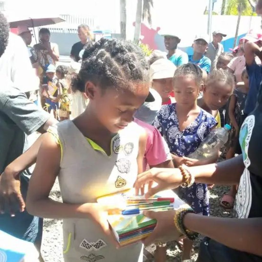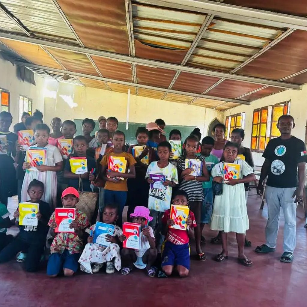Nitarika izany ny Mpandrindra Nasionaly, Atoa Fenofitondrana Rakotozanakajy, izay niaraka taminโny ekipany nizara fitaovam-pianarana ilaina andavanandro, toy ny cahier sy stylos (mainty, mena ary manga), ary koa โkits solairesโ ahafahanโireo ankizy mamahana finday aminโny toerana mbola tsy ahitana herinaratra.