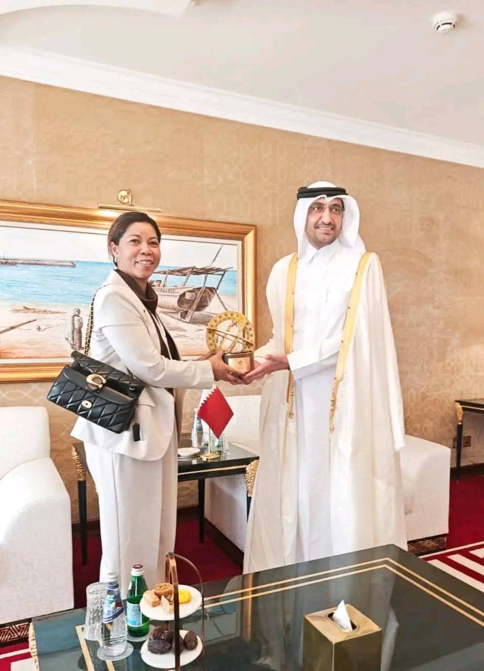 Tao anatinβny fanatanterahana ny fivoriana faha-11 anβireo Firenena Mpikambana ao aminβny Fifanarahanβny Firenena Mikambana hiadiana aminβny kolikoly (COSP11), notontosaina tao Doha, no nanatanterahana fihaonana ara-diplaomatika teo aminβny Mpitahiry ny Fitombokasem-panjakana sady Minisitry ny Fitsarana Malagasy, Ramatoa Fanirisoa Ernaivo, sy Andriamatoa Masoud bin Mohammed Al Amri, Minisitry ny Fitsarana ao aminβny Fanjakanβi Qatar.