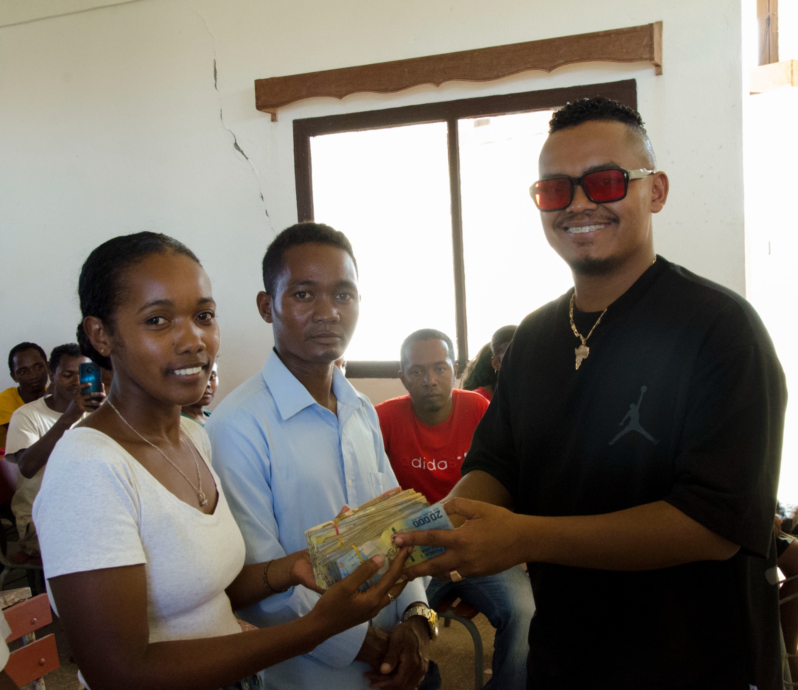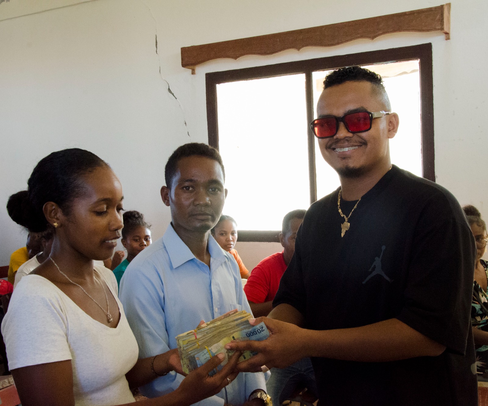 Taminโizany no nanolorany fanampiana mitentina 10.000.000 ariary ho tohana ireo mpianatra. Raha ny fanazavana nomeny, 4.000.000 ariary aminโizany dia avy aminโny Filohanโny Fanavaozana ny Repoblika, ary 6.000.000 ariary kosa avy aminy manokana aminโny maha-solombavambahoaka azy.