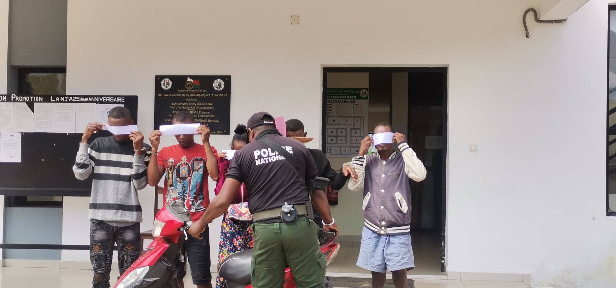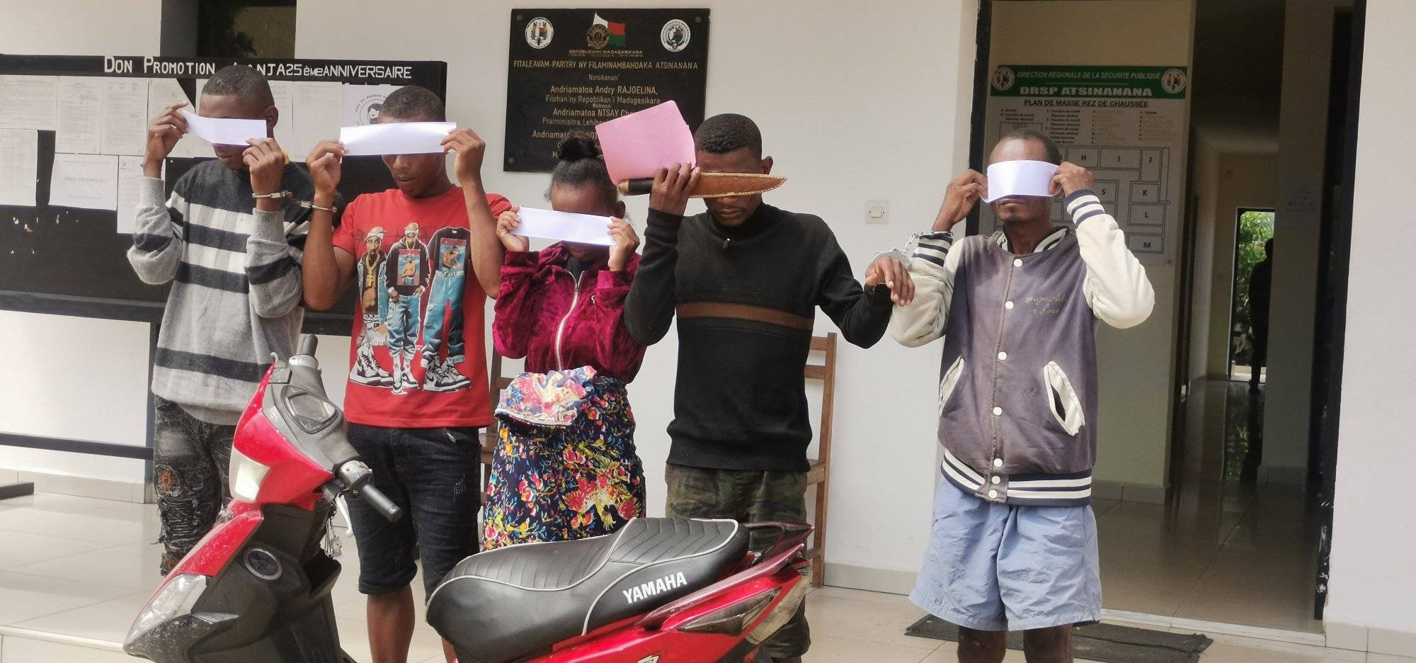 ▶ Miisa 5 ireo voasambotra ka vehivavy ny iray, izay tompon’ny moto nampiasain’ireo jiolahy.