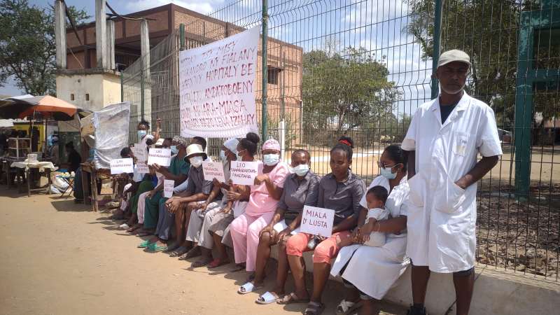 Nambaranβireo mpitsabo ao aminβny hopitaly fa mitohy ny fitokonana ataonβizy ireo nandritra ny telo andro misesy, ho fanehoan-kevitra aminβny olana tsy voavaha hatraminβizao. Nilaza izy ireo fa hitohy ny hetsika mandra-pahitana ny fandraisanβandraikitra avy aminβny manampahefana ambony.